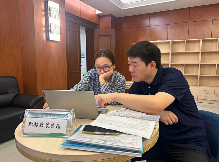 在温馨明亮的“人才之家”,来自学校和附属医院的20余名专兼职教师们,就职称申报政策、系统填报实操等问题与工作人员展开深入交流。老师们纷纷表示,这种“一对一”“面对面”的形式,高效精准地解答了长期以来在职称申报准备过程中的困惑,不仅让他们对职称评审政策有了更清晰、全面的认识,也切实感受到了学校对人才成长的重视与关怀。